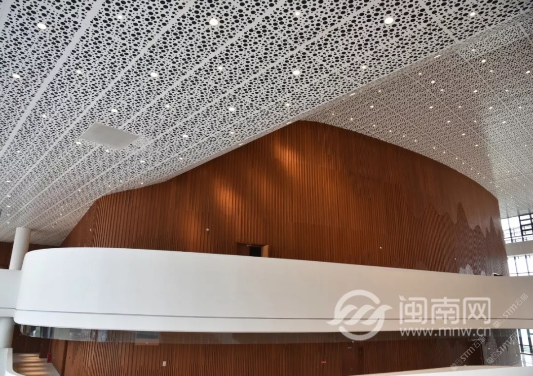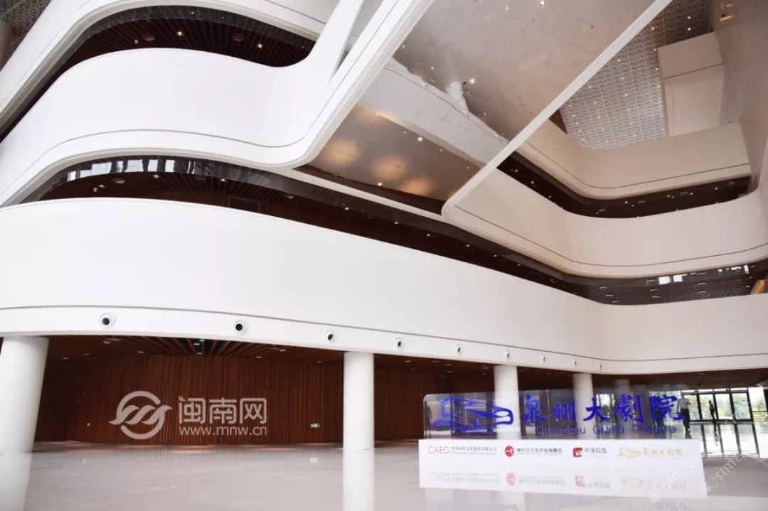 發(fā)布信息: 泉州大劇院整體設(shè)計(jì)猶如市花“刺桐花”的泉州市公共文化中心,環(huán)灣面海,欣欣向榮。公共文化中心位于東海片區(qū)山海中軸線中段,毗鄰泉州市政府,四大主體文化場館泉州科技與規(guī)劃館、東海工人文化宮、泉州大劇院、泉州圖書館一起成為“亞洲多元文化發(fā)展中心”。自2015年8月項(xiàng)目啟動建設(shè)以來,倍受泉州市民關(guān)注,這里將成為文化新家園。 “四朵花瓣”之一的泉州大劇院即將于2019年6月30日率先揭幕。 18日上午, 泉州大劇院舉行了 開幕演出季新聞發(fā)布會。 坐落于東海的泉州市公共文化中心 “四朵花瓣”之一的“海絲之花” 率先揭開了神秘面紗。 室內(nèi)設(shè)計(jì)延續(xù)外立面元素, 抽取海洋元素疊浪與海面波光等為設(shè)計(jì)意向, 水平向的穿孔鋁板像絲綢一般輕盈通透, 表達(dá)出舞蹈的節(jié)奏與音樂的韻律, 也體現(xiàn)出泉州作為“海上絲綢之路”起點(diǎn)城市的文化特點(diǎn)?!昂=z樂章”為設(shè)計(jì)主題, 建筑外立面設(shè)計(jì)采用雙層表皮結(jié)構(gòu), 內(nèi)層為玻璃幕墻,外層為金屬穿孔鋁板表皮, 水平方向的波浪形曲線設(shè)計(jì)室內(nèi)設(shè)計(jì)延續(xù)外立面元素, 抽取海洋元素疊浪與海面波光等為設(shè)計(jì)意向, 水平向的穿孔鋁板像絲綢一般輕盈通透, 表達(dá)出舞蹈的節(jié)奏與音樂的韻律, 也體現(xiàn)出泉州作為“海上絲綢之路”起點(diǎn)城市的文化特點(diǎn)。